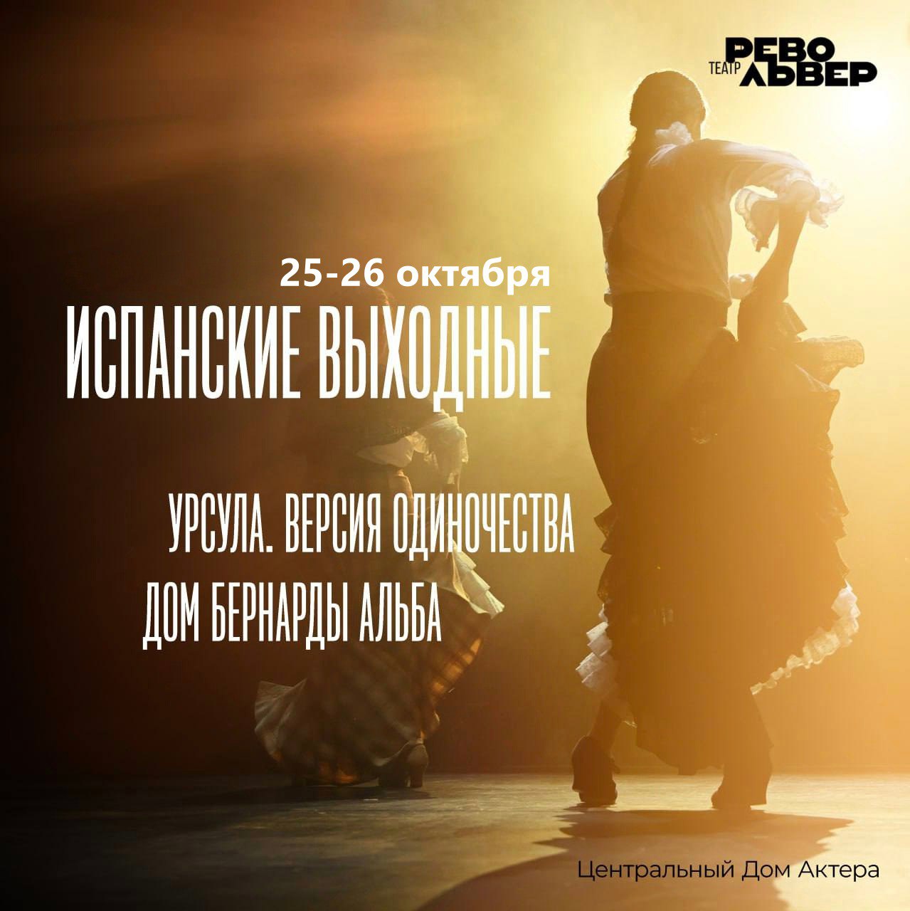 В октябре мы возобновляем полюбившийся вам мини-фестиваль испанской культуры «Испанские выходные», в рамках которого вы можете посмотреть два вечера подряд два спектакля по цене одного.